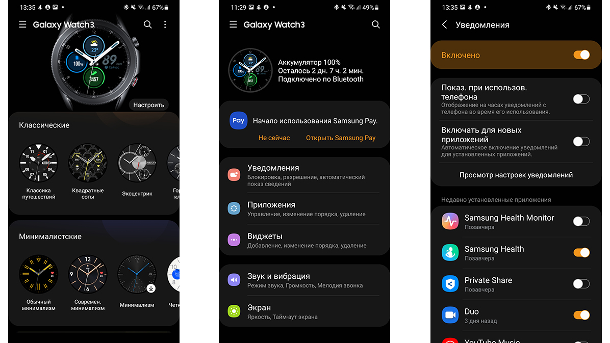 Аккумулятор часов в 360 мАч, рассчитан на 14 дней автономной работы в обычном режиме. Меню часов понятное и интуитивное, каждый пользователь сможет подобрать себе циферблат по вкусу и настроить модель под себя. Новые Galaxy Watch 3 помогут измерить уровень стресса и степень насыщения крови кислородом, с их помощью можно отслеживать фазы сна, следить за здоровьем, реабилитацией после тренировок и количество затраченных калорий. Устройство поможет женщинам заботиться об их здоровье и видеть календарный цикл. Безусловно, универсальность, доступность, автономность и строгий дизайн Galaxy Watch 3 придутся по вкусу настоящим ценителям смарт-часов.
