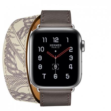 Apple Watch Hermes Series 5, 40mm Stainless Steel Case with Etain Beton Swift Leather Double Tour