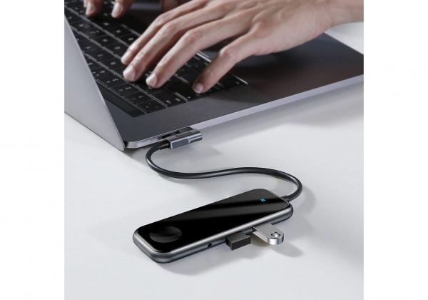 Данное устройство имеет индикатор, который помогает определять уровень проблем на компьютере или телефоне. Это можно понять по его светящемуся огоньку, который горит либо красным, либо нежно-голубым цветом. Данная функция помогает обнаружить проблемы и решить их сразу после предупреждения. Тем самым увеличить срок продолжительности работы компьютера, смартфона или другого устройства. в подведение итогов можно сказать, что Baseus Superlative Multifunctional HUB имеет ряд преимуществ, которые определяют высокое качество этого устройства, так как оно имеет больше функциональности и других приятных функций, чем другие устройства этой модели.